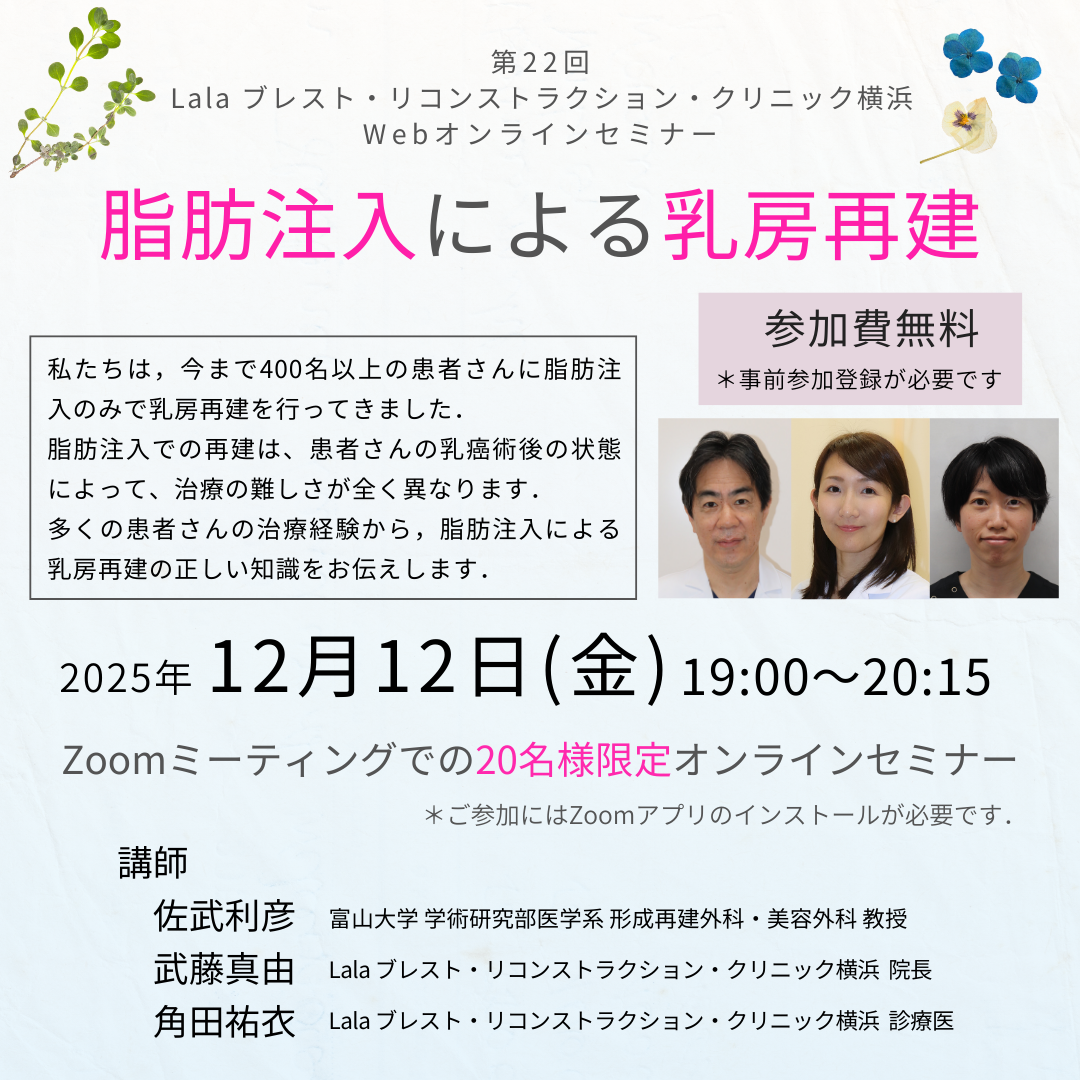 2025年12月12日 脂肪注入による乳房再建オンラインセミナー